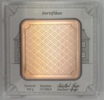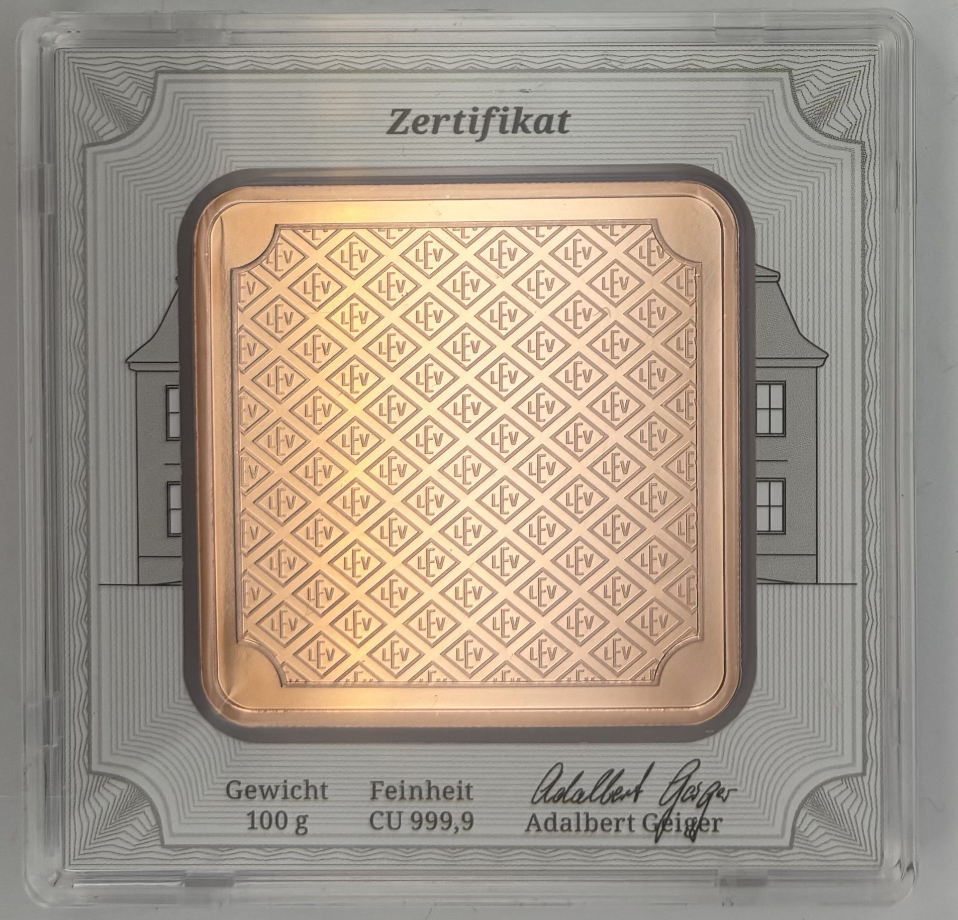 Kzoo Bullion is excited to offer this exclusive Geiger Edelmetalle Square 999+ copper 100 gram bar in assay! These iconic Geiger Edelmetalle copper bars are the perfect size for stacking, gift-giving, etc. Get yours today before they sell out!